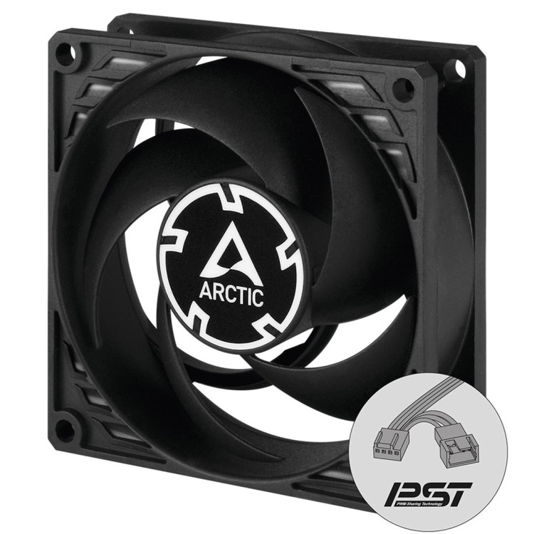 P8 PWM PST CO - 80x80x25 mm větráček optimalizovaný na tlak s PWM řízením a PST konektory pro řízení více ventilátorů a dvojitými ložisky pro nepřetržitý provoz.