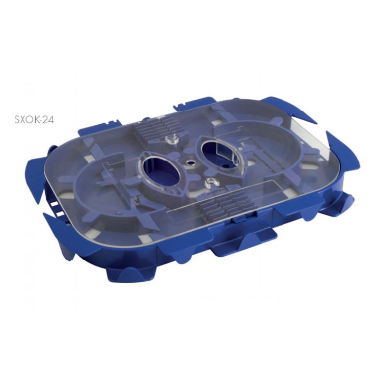 Optická kazeta disponuje unikátním systémem pro vedení vláken jak ve vnitřní části, tak i na vnější části po jejím obvodu. Součástí optické kazety jsou dva dvoupatrové hřebínky, které společně pojmou kapacitu až 24 ochran svárů. Uchycení a konstrukční řešení výklopných hřebínků umožňuje vedení vláken pod nimi samotnými. Součásti sady je průhledné plastové víko, které díky jednotlivým uchytům umožňuje pevné stohování kazet. Stohované kazety je možno vyklápět díky přídavným plastovým pantům. Vně optické kazety se nachází nástroj (plastový háček), který usnadňuje práci a manipulaci při ukládání optických vláken. Hřebínky v kazetě jsou kompatibilní pro ochrany svárů do průměru max. 2,2mm.