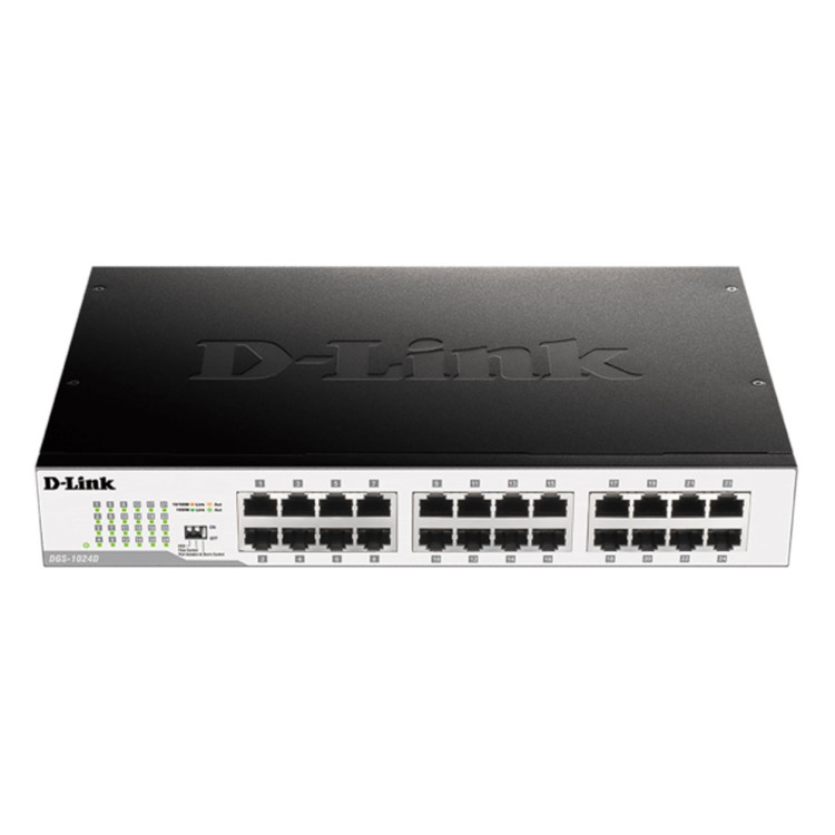 Prepínac poskytuje 24 gigabitových portu pro bežne používané ethernetové pripojení, takže funguje bez problému s již zavedenými sítovými kabely (Cat5 nebo vyšší). V režimu full-duplex lze dosáhnout rychlosti až 2000 Mb/s, což dává pracovním stanicím prakticky neomezený prístup k datum na serveru.
