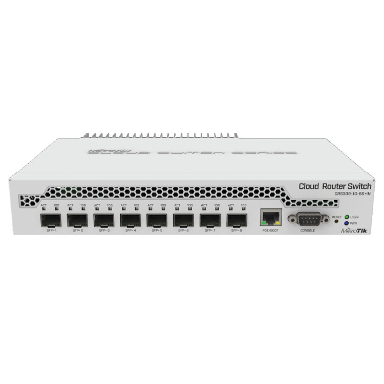 Cloud Router Switch CRS309-1G-8S+IN je operačním systémem SwOS či RouterOS poháněný 8-portový switch s osmi SFP+ šachtami a jedním management ethernet portem v desktop provedení.