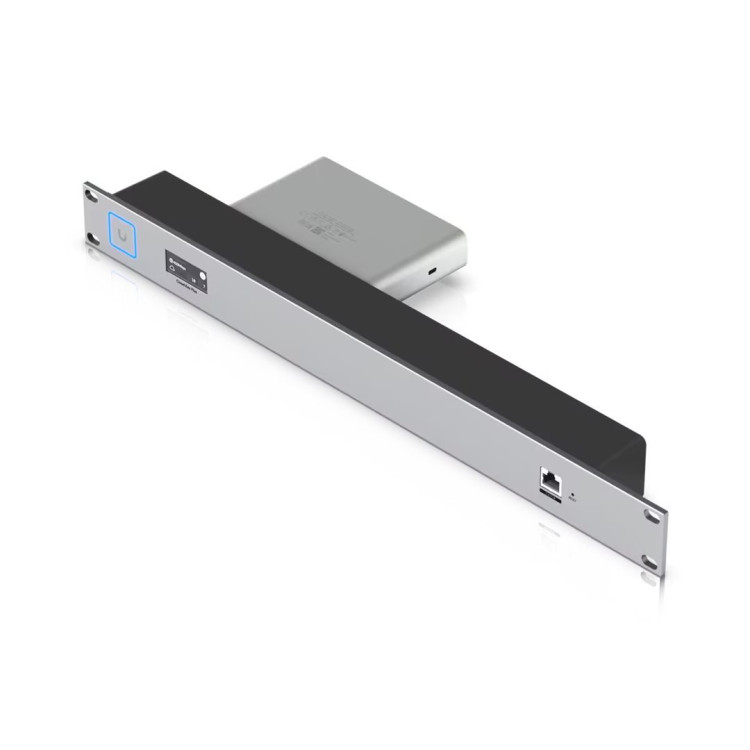 Kromě montáže do racku umožňuje vyvedení LAN portu, resetovacího tlačítka a LED statusu na přední stranu panelu. LAN port je možné využít jak na zadní straně Cloud Key, tak na přední straně, nikoliv však oba zároveň.