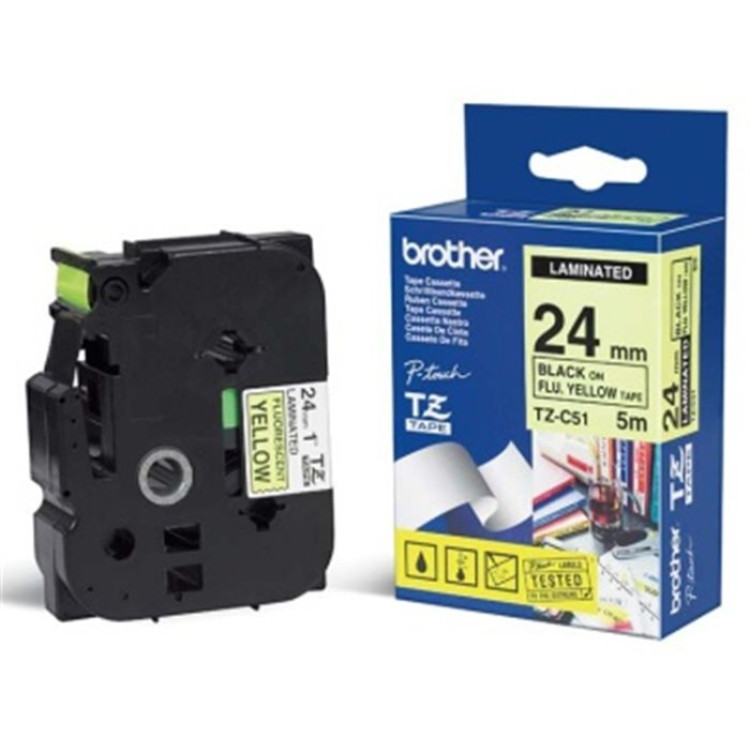 Originální kazeta s páskou Brother TZe-C51 - černý tisk na fluorescenční žluté, šířka 24 mm