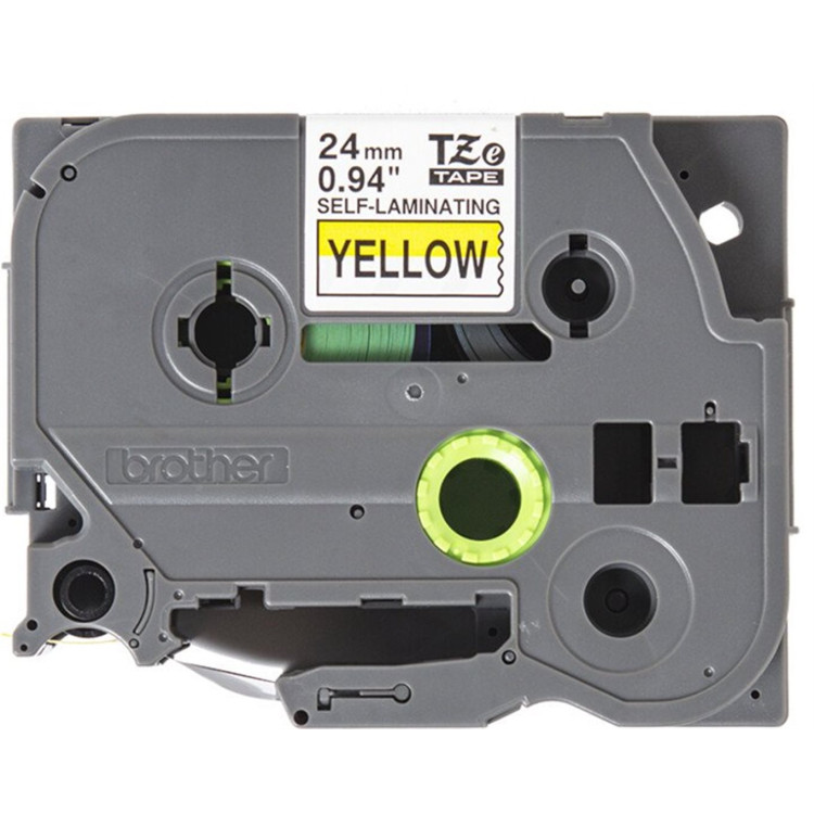 24 mm široká SAMOLAMINOVACÍ páska žlutá / černý tisk, vhodná pro značení optických, síťových a jiných elektro kabelů v rozmezí 3,0-6,6 mm jejich průměru.