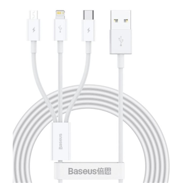 Baseus Superior 3v1 kabel pro nabíjení zařízení s USB-C, Lightning a microUSB z USB konektoru notebooku nebo síťové nabíječky.