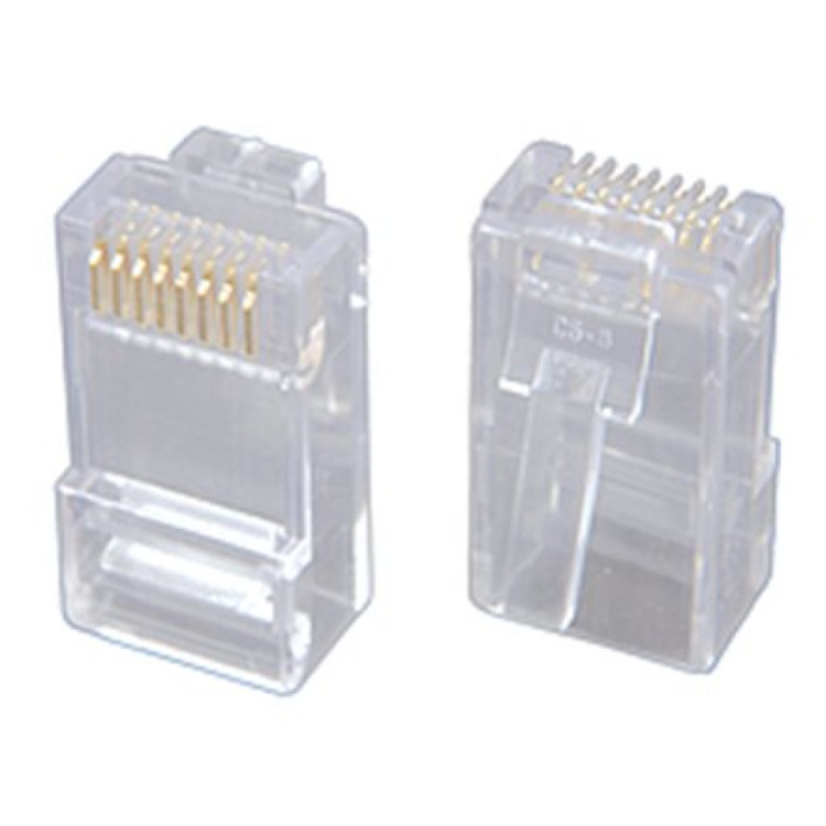 Nestíněný konektor RJ45 8p8c. Pro vodič licna, kulatý kabel. Bez vložky.