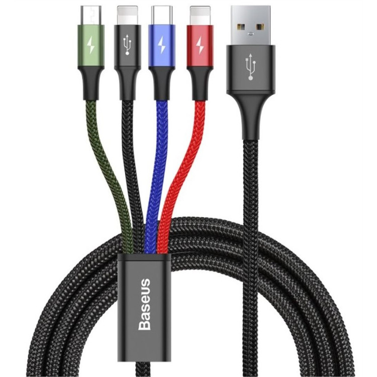 Baseus CA1T4-A01 Fast 4in1 Kabel 2x Lightning, USB-C, MicroUSB 3.5A 1.2m Black