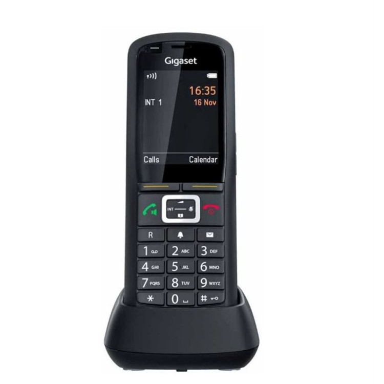 Telefon Gigaset R700H PRO se dokonale přizpůsobí každodennímu pracovnímu životu. Bez ohledu na to, kde se používá, ať už v dešti, nebo v prašných provozech, se na něj můžete spolehnout. Díky pogumovanému povrchu je také velmi praktický. Dokonce ani použití v pracovních rukavicích není problémem. Vaši bezpečnost navíc zajišťuje tlačítko alarmu.