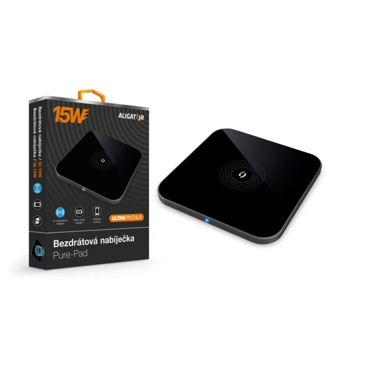 • ALIGATOR bezdrátová nabíječka Aligator Pure-Pad 15W, černá