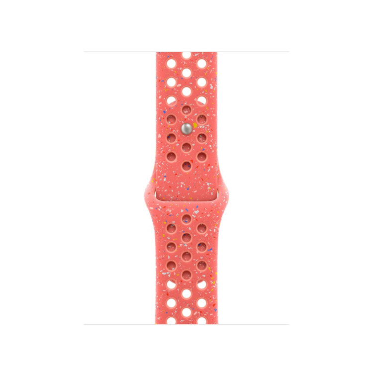Tenhle sportovní řemínek Nike má vylisované otvory pro větší vzdušnost, je odolný, pevný a přitom krásně poddajný. Obsahuje barevné vločky vytvářející náhodné vzory, takže každý řemínek je originál. Jeho hladký, hutný materiál se elegantně ovine kolem zápěstí a příjemně sedí. A nově se zapíná na hliníkový kolíček s matným povrchem.