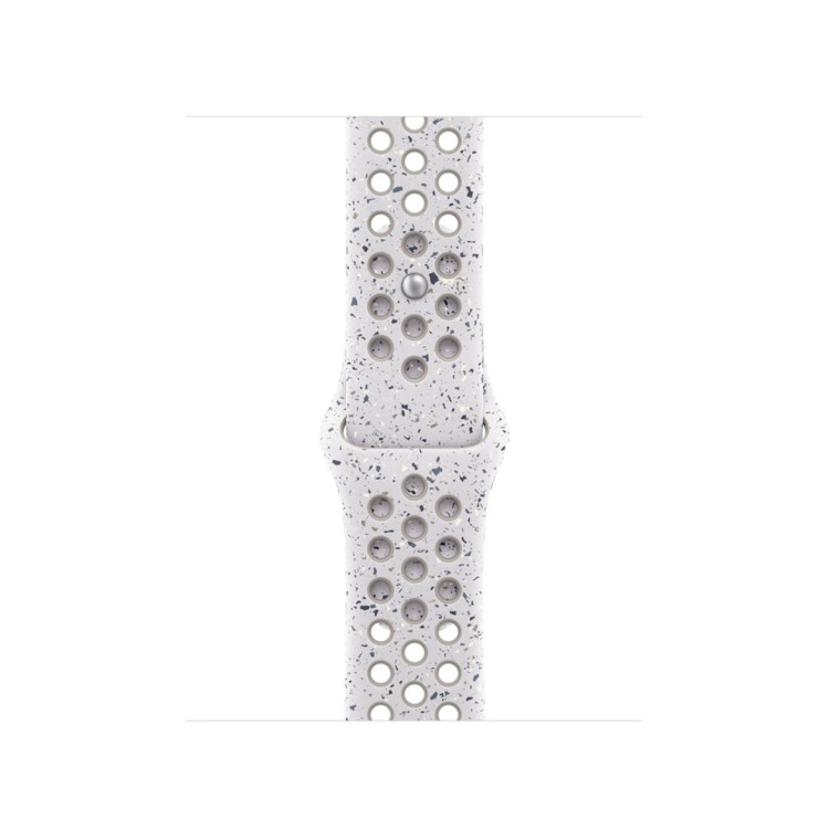 Tenhle sportovní řemínek Nike má vylisované otvory pro větší vzdušnost, je odolný, pevný a přitom překvapivě poddajný. Obsahuje barevné vločky, které tvoří náhodné vzory, takže každý řemínek je originál. Jeho hladký, hutný materiál se elegantně ovine kolem zápěstí a příjemně sedí. A zapíná se na hliníkový kolíček s matným povrchem, do kterého je pečlivě vygravírované logo Nike Run.