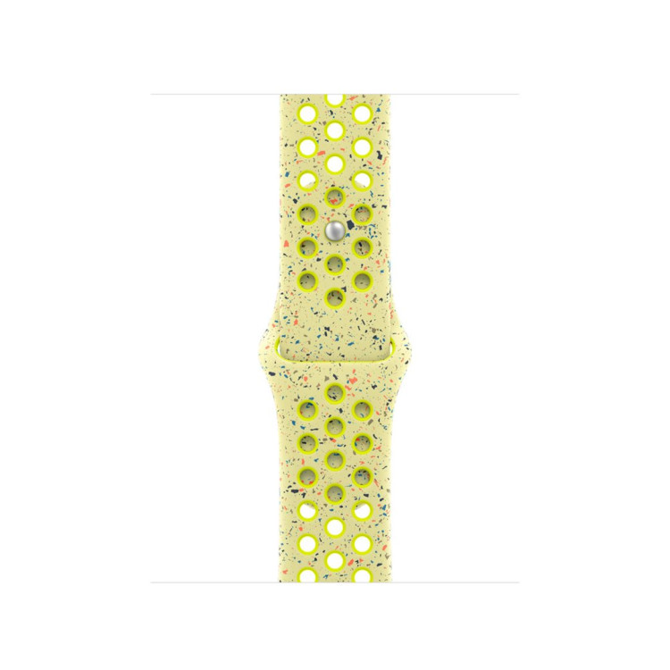 Tenhle sportovní řemínek Nike má vylisované otvory pro větší vzdušnost, je odolný, pevný a přitom překvapivě poddajný. Obsahuje barevné vločky, které tvoří náhodné vzory, takže každý řemínek je originál. Jeho hladký, hutný materiál se elegantně ovine kolem zápěstí a příjemně sedí. A zapíná se na hliníkový kolíček s matným povrchem, do kterého je pečlivě vygravírované logo Nike Run.
