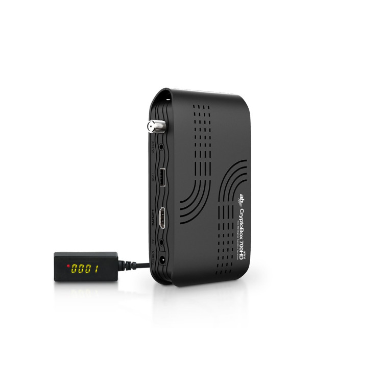 Nová modelová rada satelitného prijímača AB CryptoBox v prevedení MINI vylepšená o najnovší kodek H.265 HEVC a s ešte výkonnejším hardwarom.. Kombinácia digitálneho satelitného prijímača a multimediálneho prehrávača v plnom Full HD 1080p rozlíšení. Vhodný pre montáž za TV prijímač, alebo v skrytom priestore. Vyvedené IR čidlo s numerickým LED displejom a kontrolkou zapnutia/vypnutia. Stream videa- pozeranie živého vysielania a ovládanie prijímača na Android zariadeniach, prehrávanie multimediálneho videa, obrázkov a hudby. Nahrávanie programov v reálmom čase, jednoduché časové nahrávanie cez EPG sprievodcu, alebo TIMESHIFT s časovým posunom v nahrávke. X-tras panel s množstvom funkcií: Množstvo Hier, FTP Downloader, Predpoved počasia, RSS prehliadač správ a množstvo iných aplikácií. FTP Downloader pre zálohu, obnovu a prenos súborov z USB na FTP alebo z FTP na USB (setting, firmware, video, MP3 ...) Konektory: 2x USB 2.0, HDMI, Analogový Audio/Video výstup JACK 3,5, Optický SPDIF audio výstup, RJ45 konktor LAN, Externé IR čidlo, Externý zdroj 220V/12V. Prijímač obsahuje konzolu na uchytenie (3M obojstranná páska).