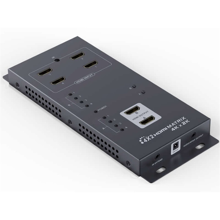 Umožní propojit více zdrojů signálu, 4 vstupy HDMI na 2 výstupy HDMI.