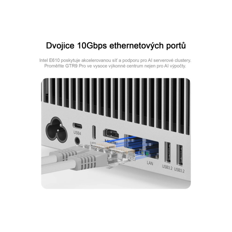 Podporuje standardy Wi-Fi 7 IEEE 802.11be a nabízí pevné připojení pomocí RJ45 dvou nejvýkonnějších 10Gbit Ethernet portů díky Intel Ethernet Adapter E610.