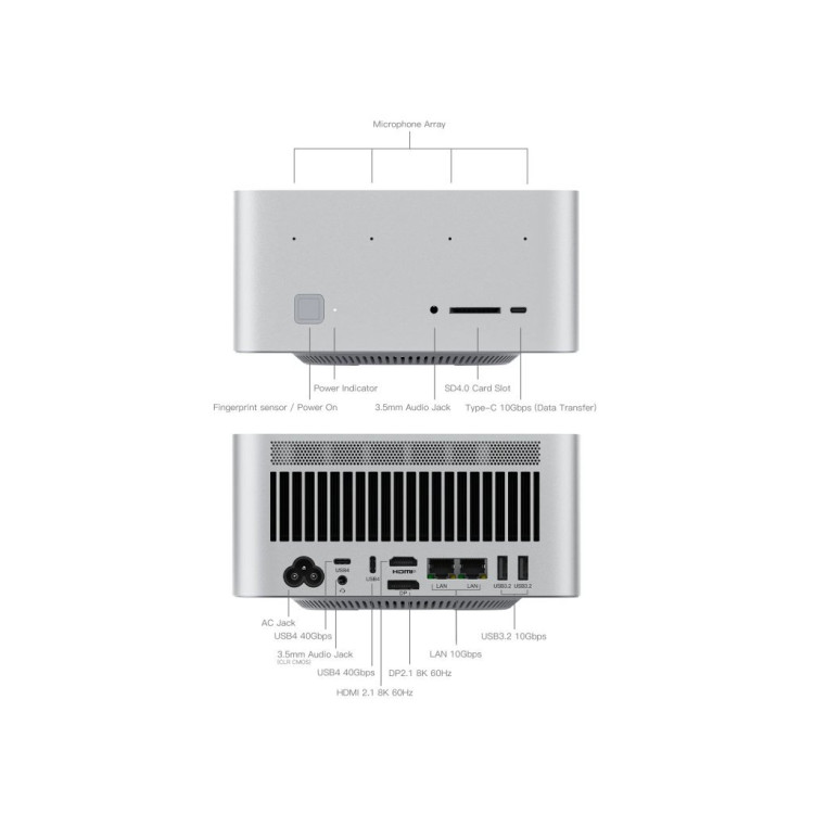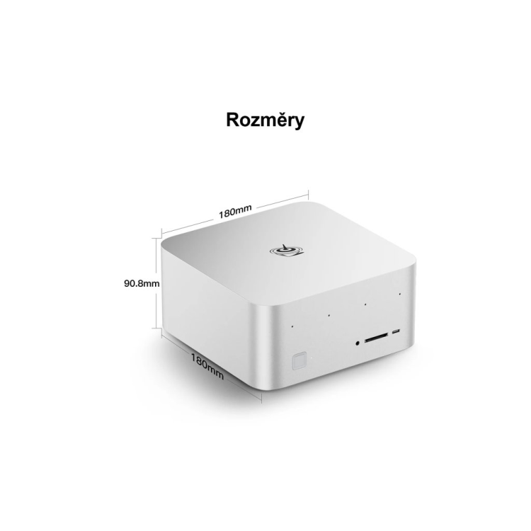 Velikost tohoto mini počítače je 180 x 180 x 91 mm s váhou okolo 800 gramů. Tento mini počítač je kompaktní a stylový. Nehledě kam jej umístíte, vždy designově zapadne.