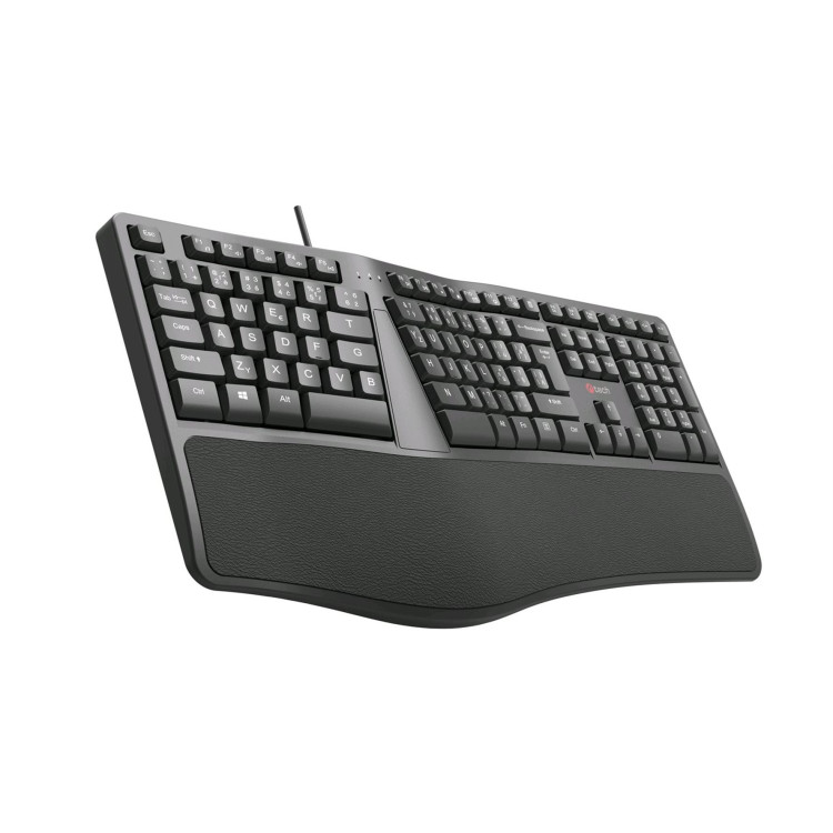 Ergonomická klávesnice C-TECH KB-113E byla navržena pro ty, kteří tráví prací mnoho hodin. Svým speciálním konstrukčním řešením a měkkou předložkou Vám tato klávesnice pomůže minimalizovat Vaši únavu při dlouhé práci. Pomáhá také podobně jako vertikální myš předejít, nebo zmírnit dopady onemocnění karpálního tunelu.