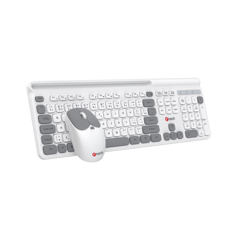 Klávesnice C-TECH Quallis WLKMC-05, bezdrátový combo set s myší, bílá, USB, CZ/SK